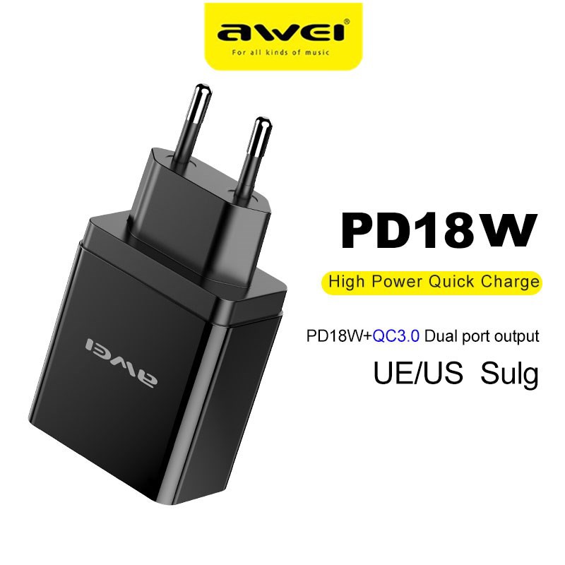 The AWEI C-811 Charger helps you quickly charge your gadget. Charging is suitable for any device with a USB-C connector: smartphones, tablets, etc. The AWEI C-811 is a budget option for a quality charger.
