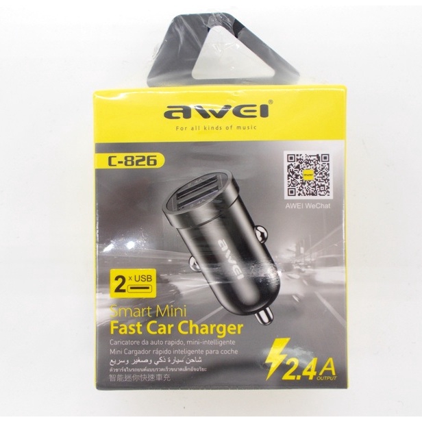 Awei C-826 2.4A DUAL USB Interface Fast Charging Smart SUPER MINI Car Charger