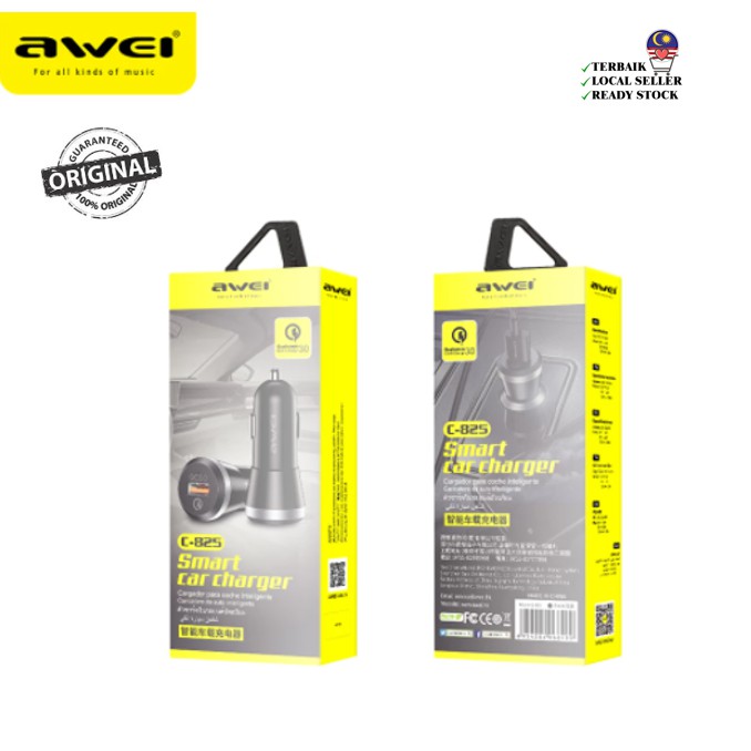 Feature AWEI C-826T USB Quick Charge Car Charger: Brand: awei Model: c-826T Product function: dual output car charger Product size: 47 * 23 Output: dc5v-2.4a Material: PC flame retardant Power: 12W Color: Black
