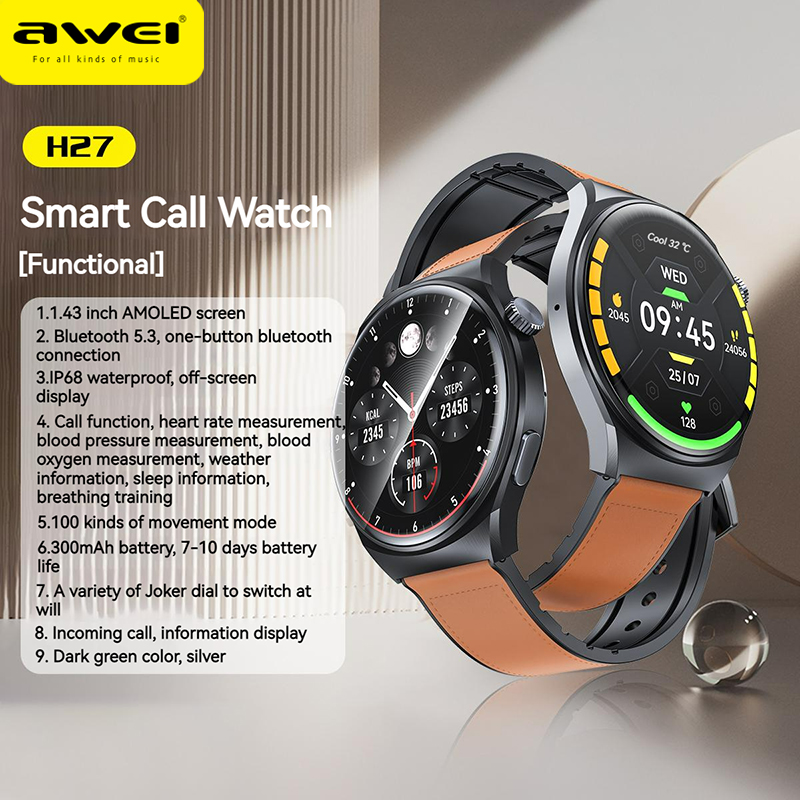 Awei H27 Smartwatch Bluetooth Call Men Sports Fintess Watches