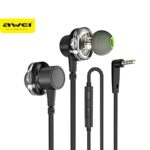 AWEI Z1 Wired Dual Driver Earphone Headset Sport Stero Bass Sound Earphones With Microphone 3.5mm Jack Earbuds For Phones Mp3